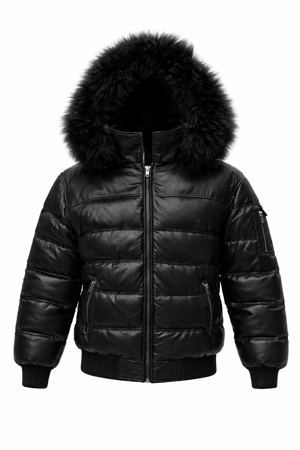 Function meets street-ready fashion with smart utility details: dual front zipper pockets, plus a zippered sleeve pocket with hidden storage and an additional adjacent pocket for quick access essentials. Phone, keys, cards — secured and within reach. This is not just a warm coat — it’s a statement winter essential designed for women who move with confidence. If you’re looking for a stylish black puffer coat with fur hood that blends luxury, warmth, and real city durability, Brick City Leather delivers.