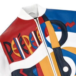 Discover the eye-catching Pelle Pelle “Picasso” Leather Jacket, available at Brick City Leather, your go-to store in the Tri-State NY region for premium leather jackets. This standout piece features an array of vibrant colors, with a predominantly white base that makes it perfect for any style enthusiast. The Pelle Pelle “Picasso” jacket is a must-have for fashion-forward individuals who love unique and bold designs.